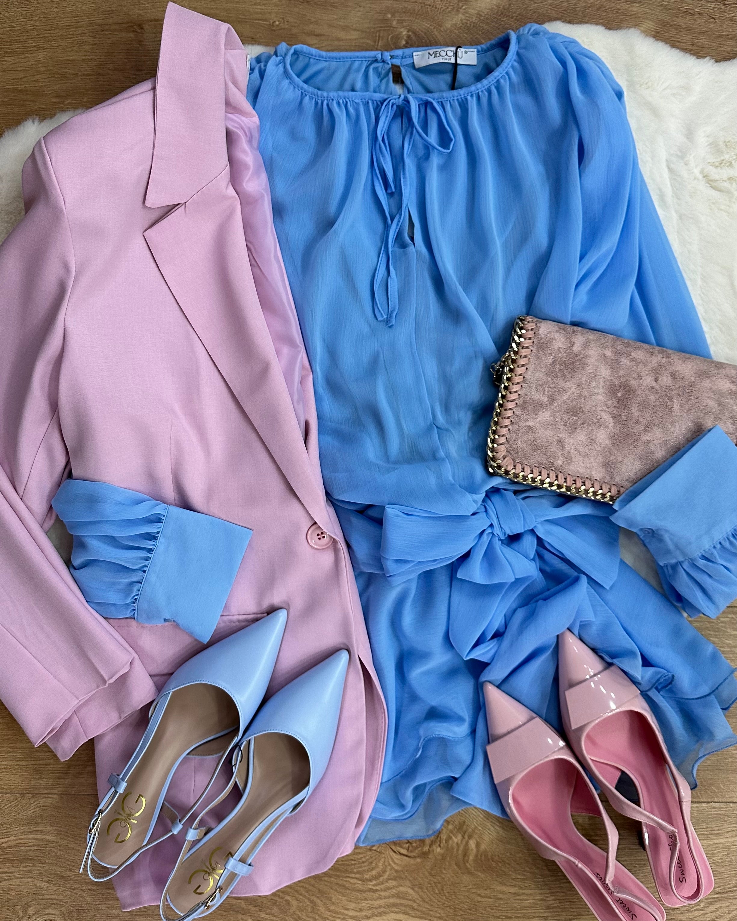 Abito corto in chiffon leggero e svolazzante, perfetto per un look femminile ed elegante.