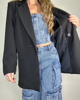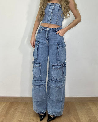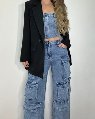 Coordinato denim - cargo + top 90% cotone