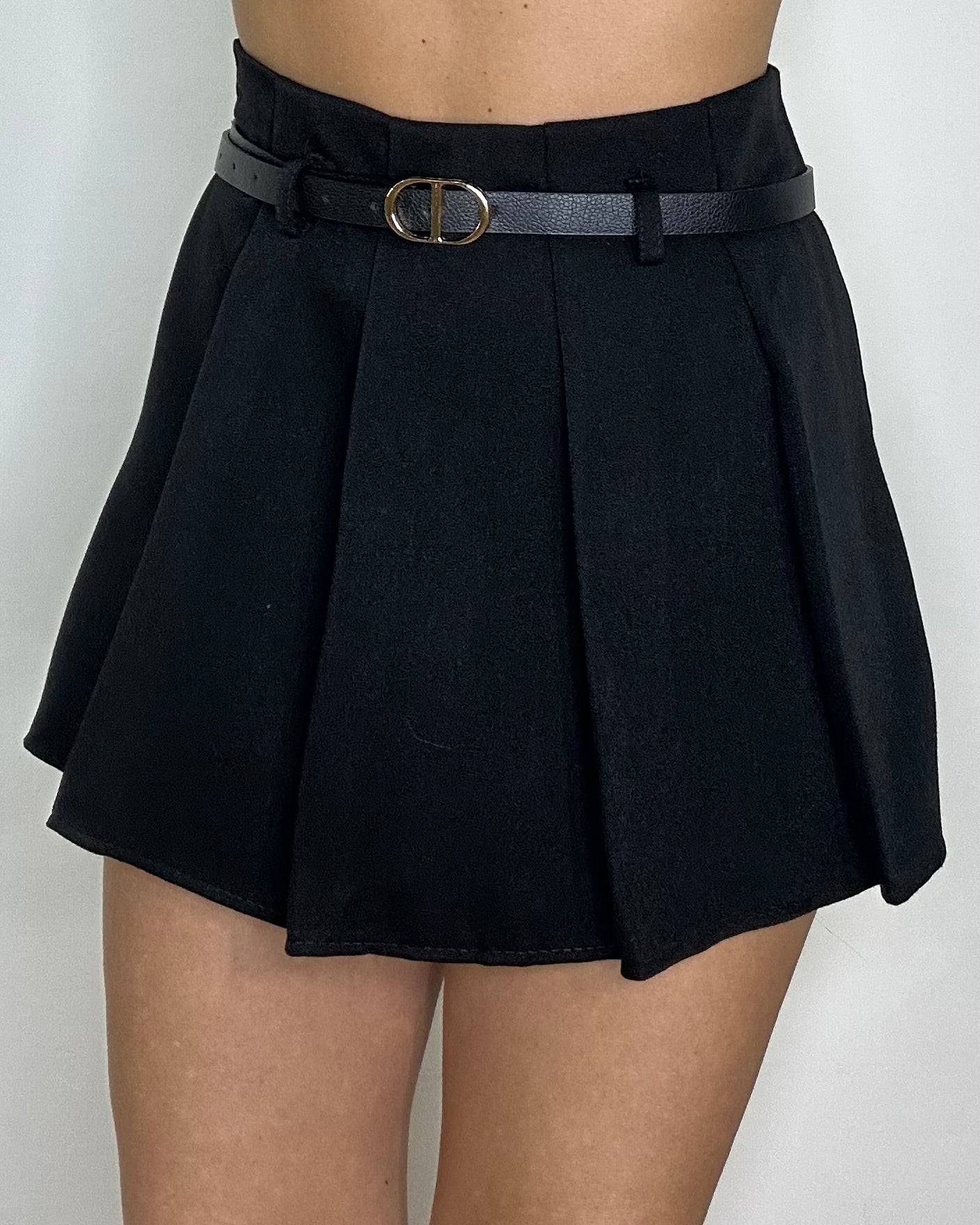Panta gonna plissè vita alta non elasticizzato zip laterale, cintura regolabile estraibile, vestibilità regolare per taglia