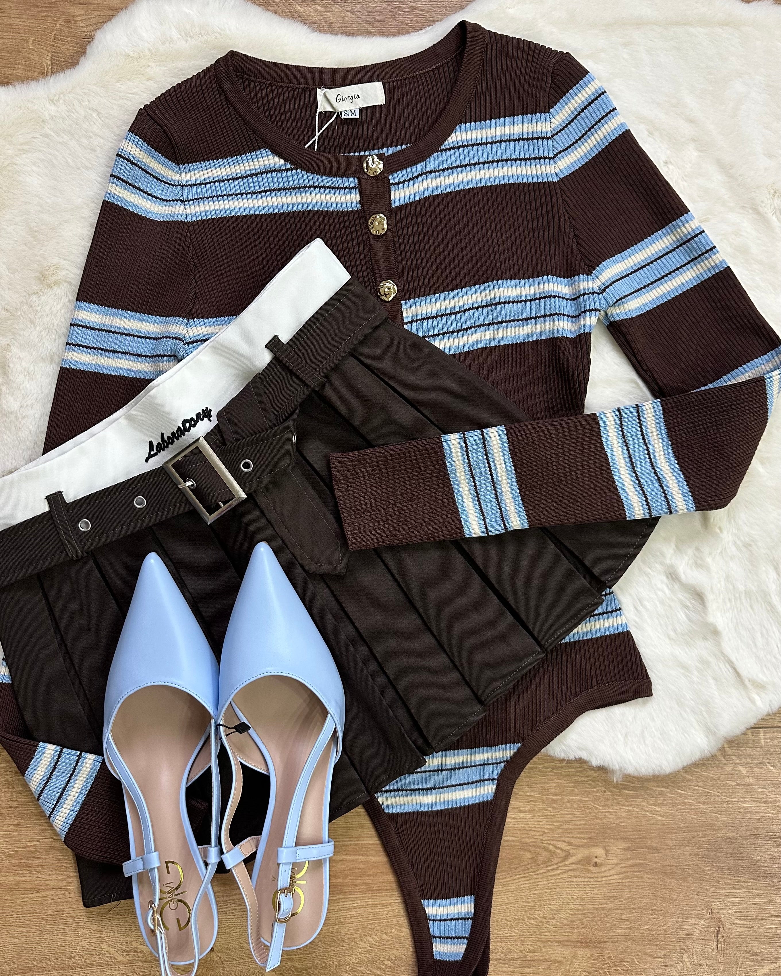 Panta gonna plissè Paris vita alta non elasticizzato zip laterale, cintura regolabile estraibile, vestibilità regolare per taglia