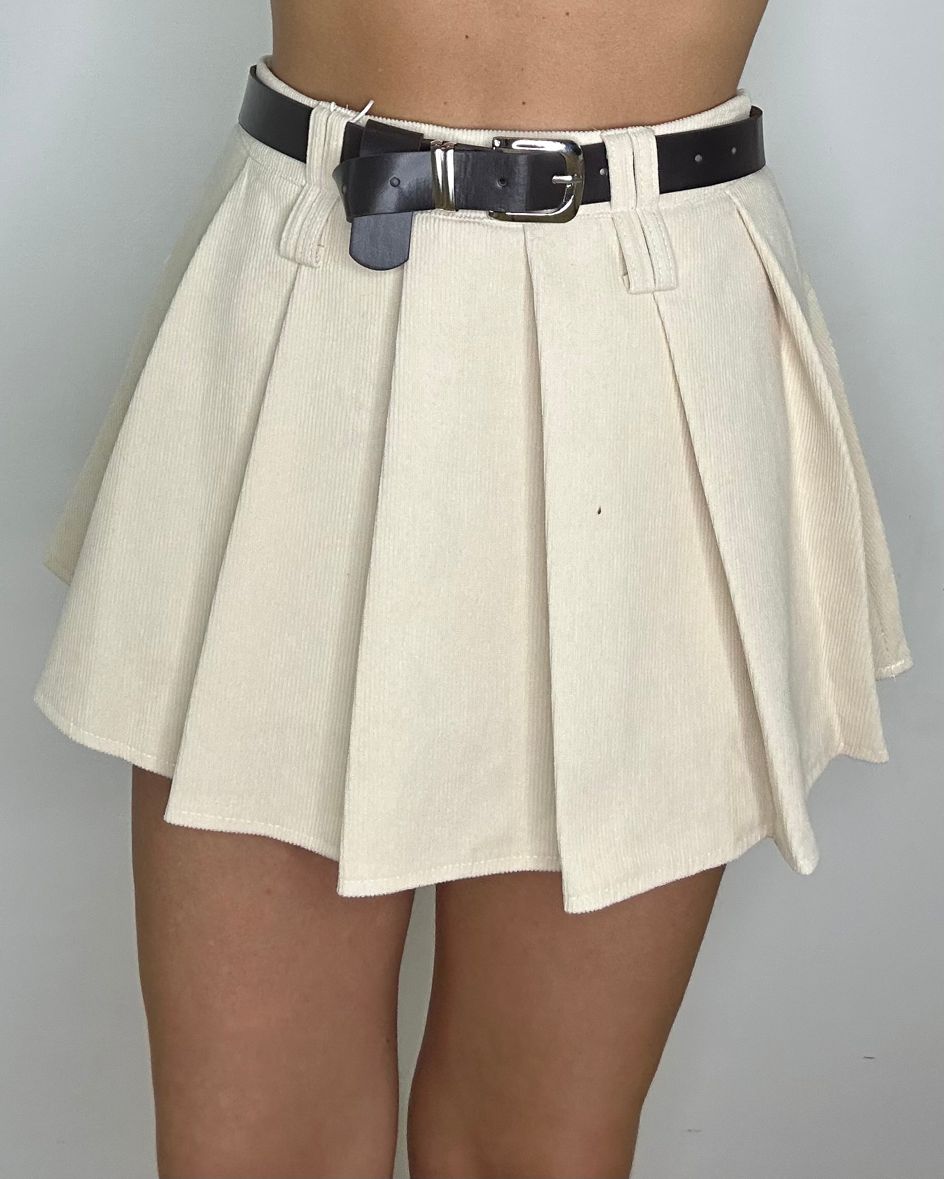 Panta gonna plissè Paris in velluto a costine vita alta non elasticizzato zip laterale, cintura regolabile estraibile, vestibilità regolare per taglia