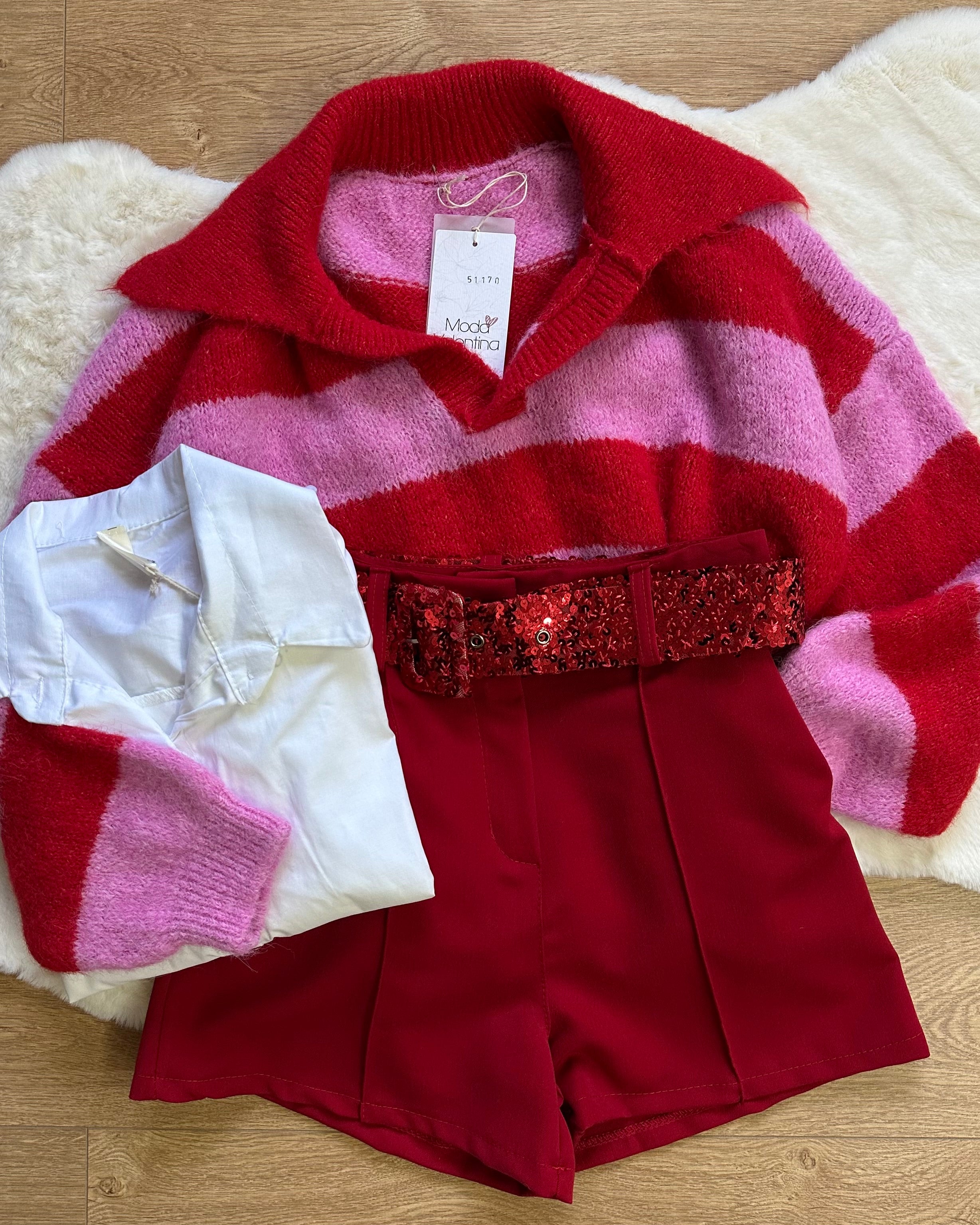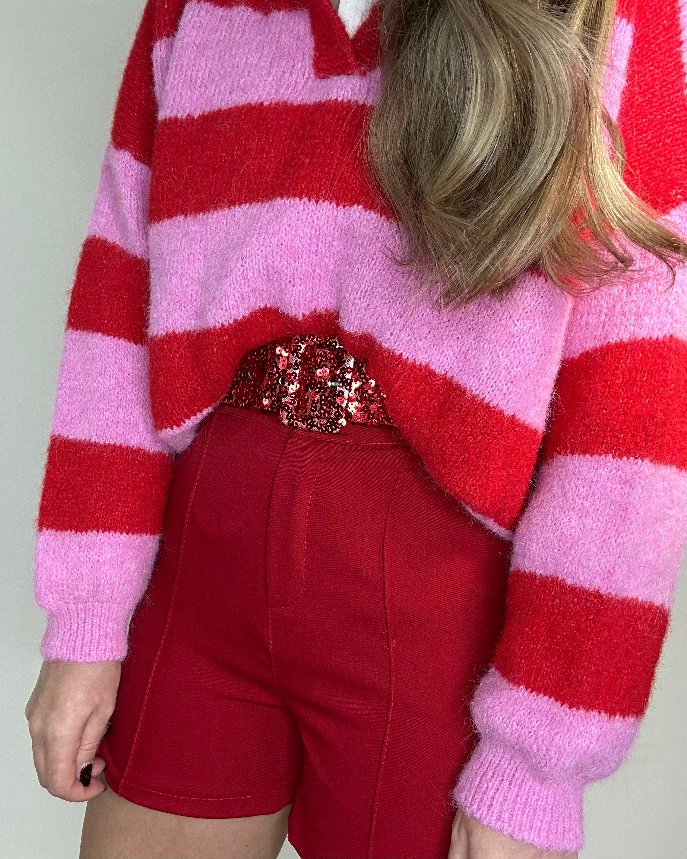 Short non elasticizzato, vita alta, cintura ricoperta di paillettes regolabile estraibile, vestibilitá aderente , vita alta, sé indecisa tra due taglie scegli la più grande