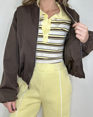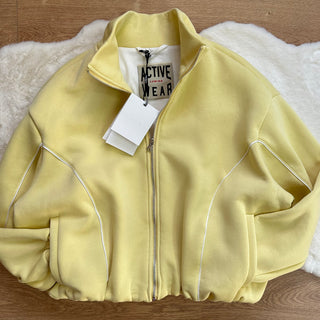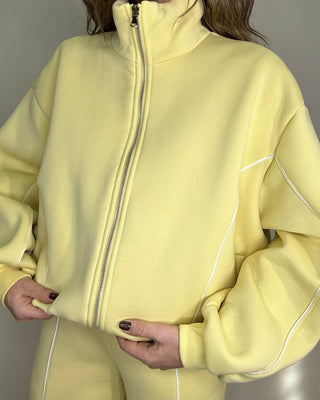 Felpa bomber gialla Lumina con zip e profili a contrasto