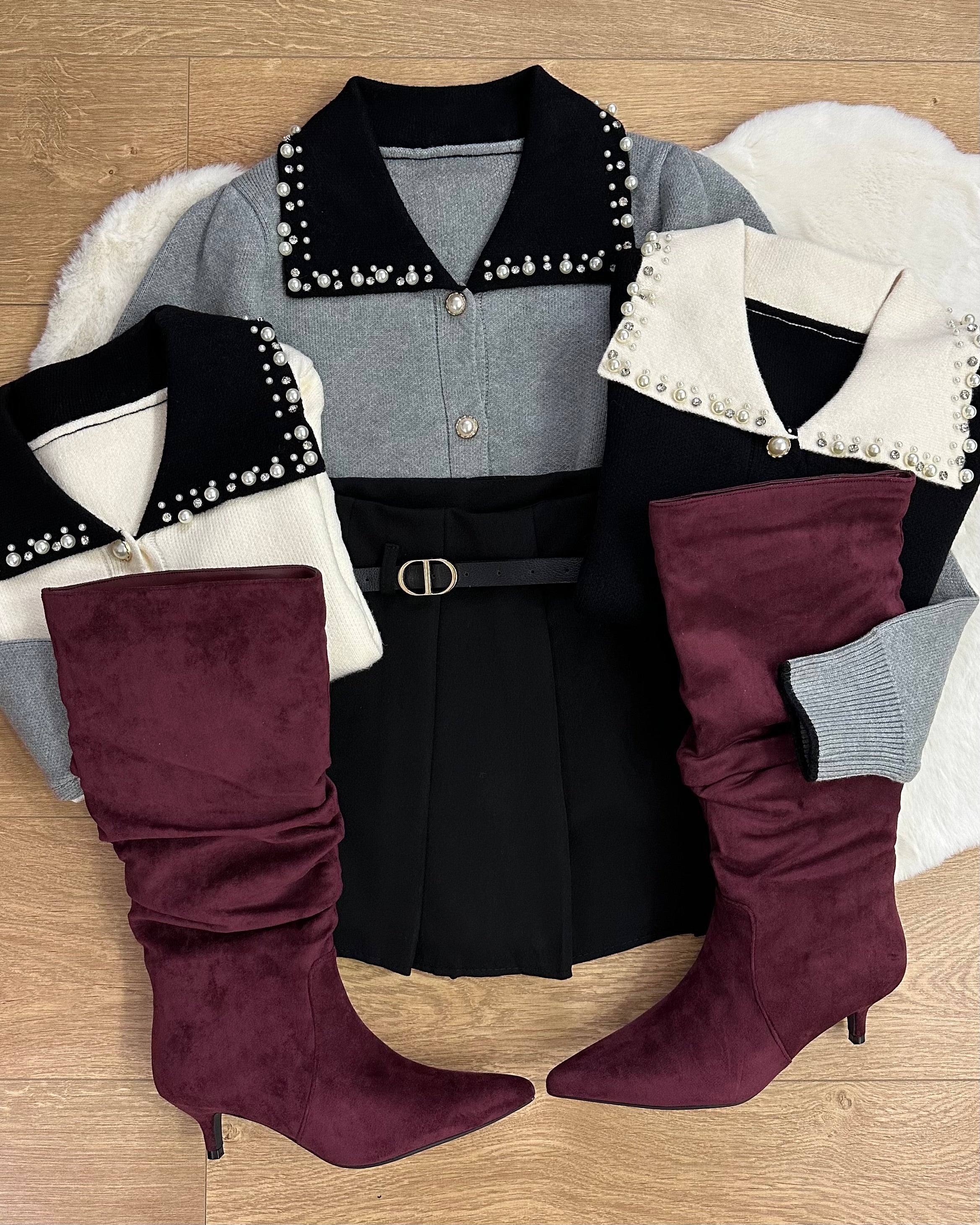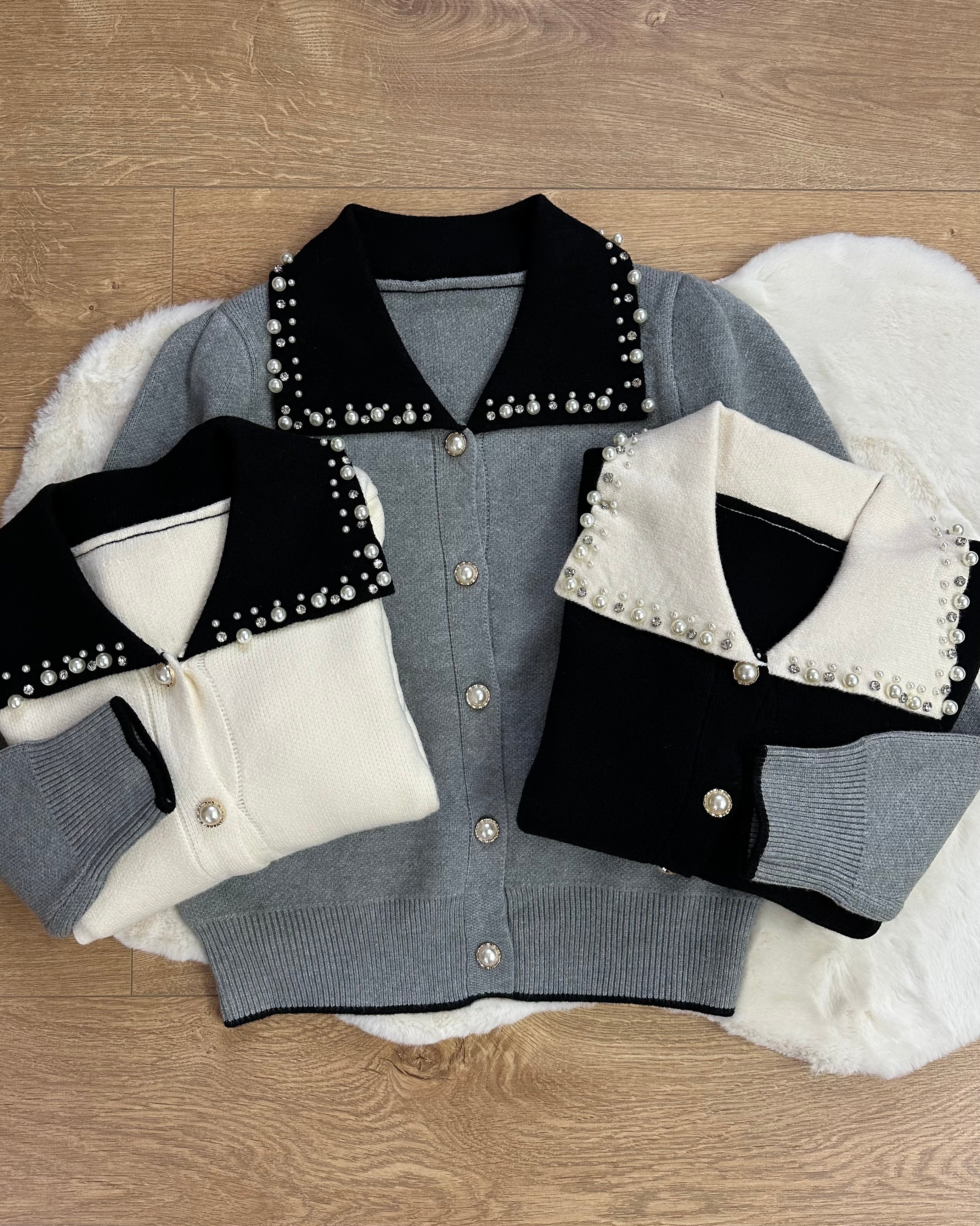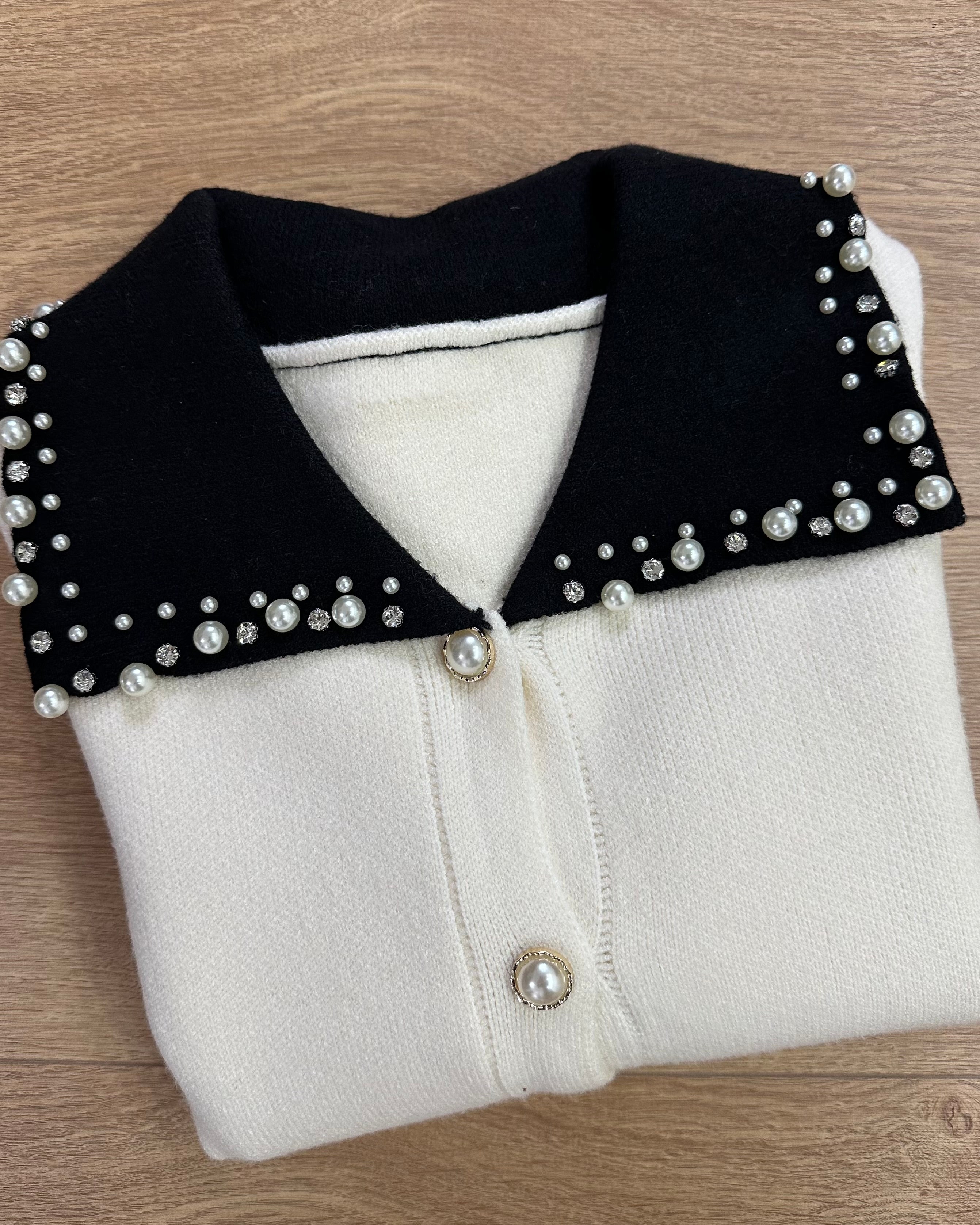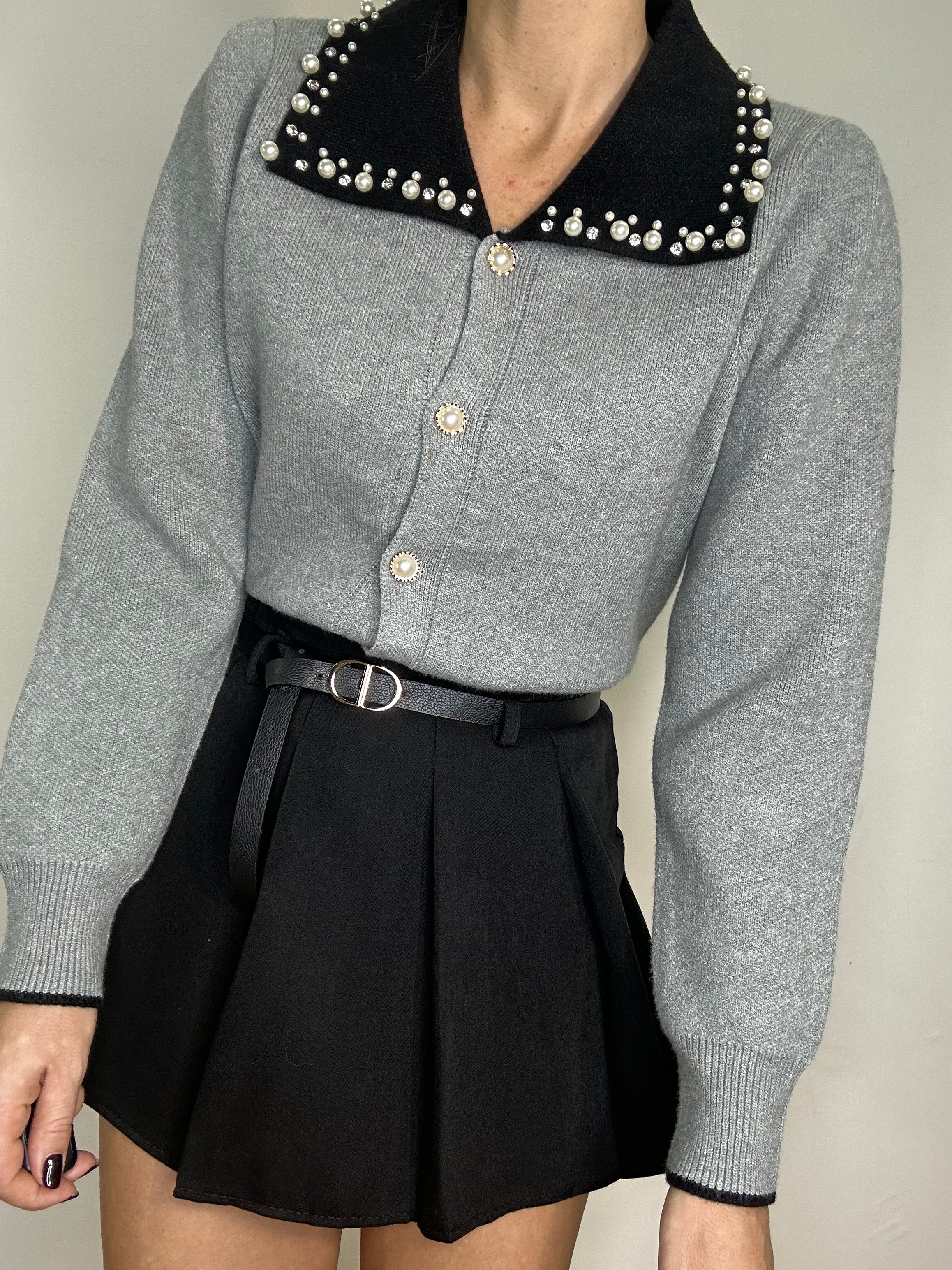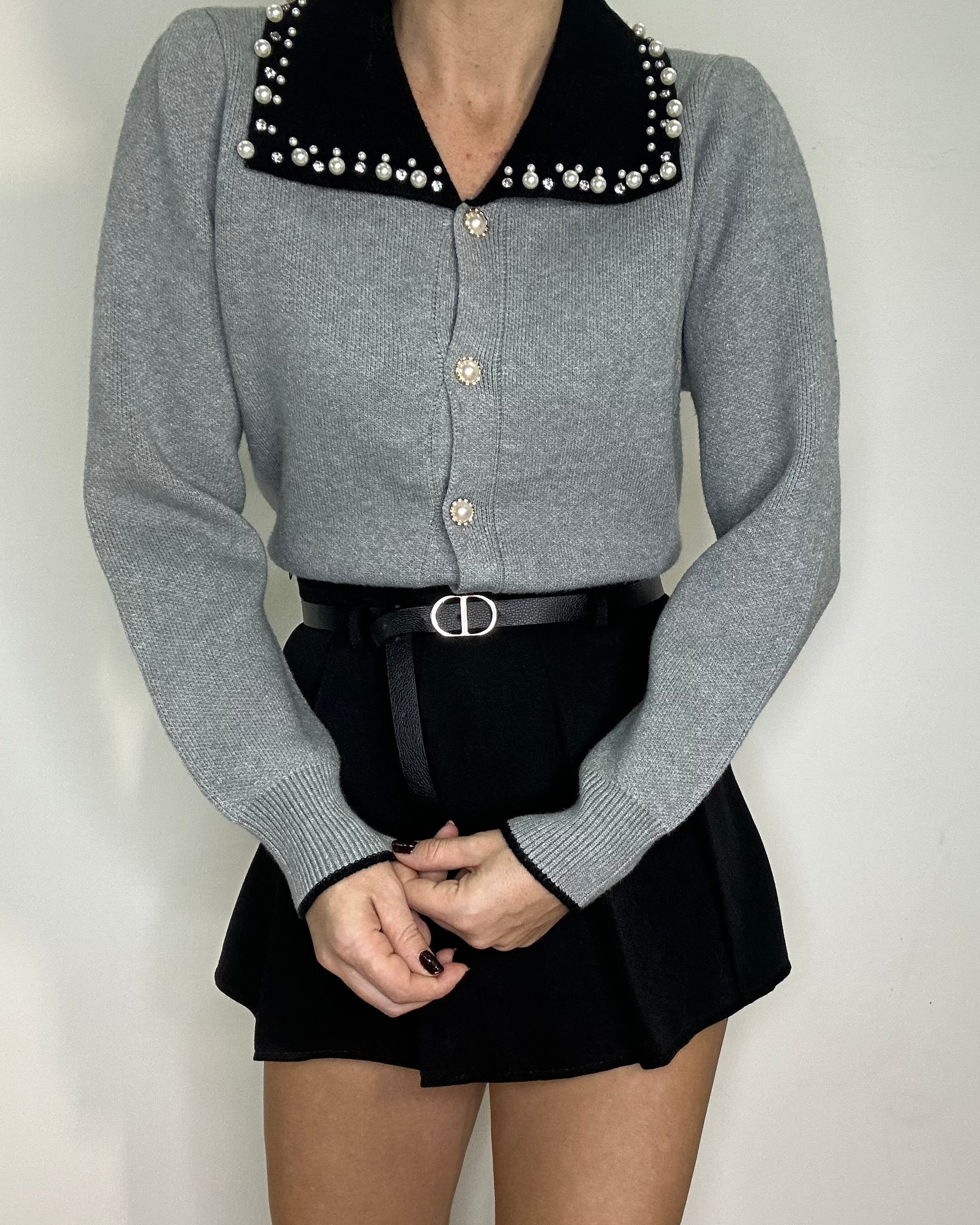 Cardigan con colletto gioiello - grigio - nero - avorio