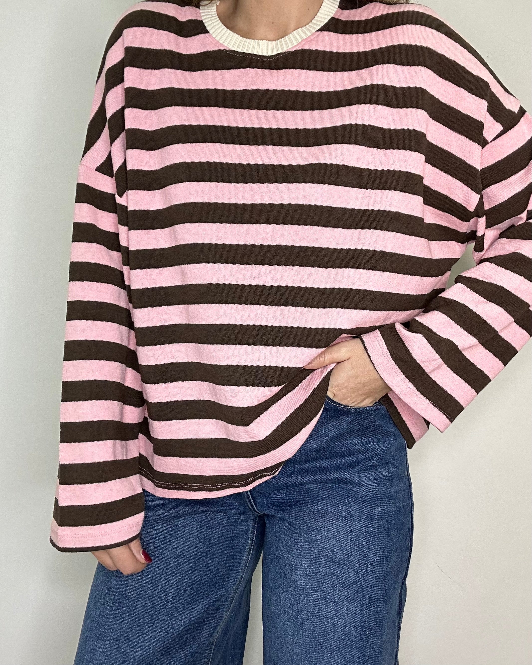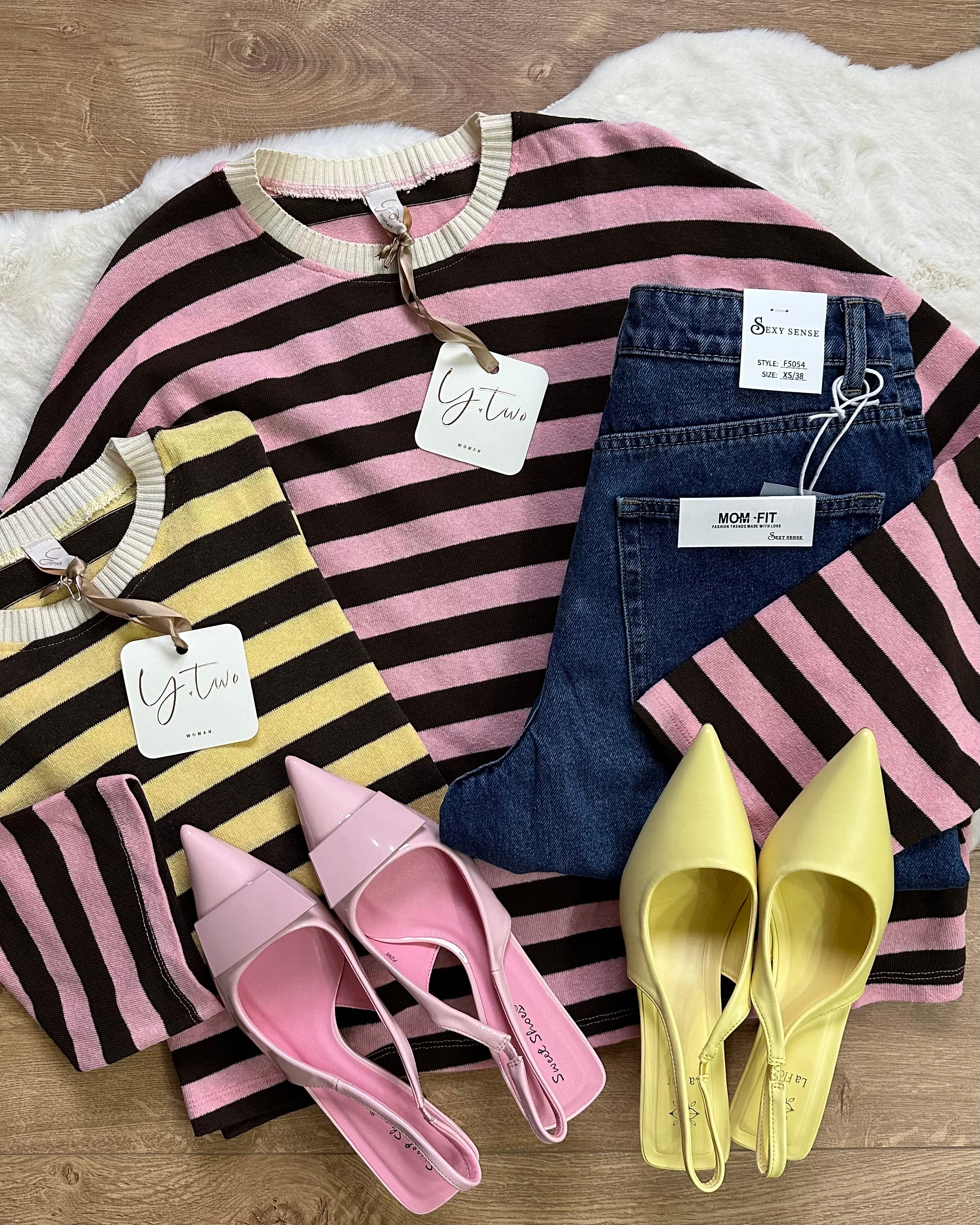 Maglia oversize girocollo Paris rosa e giallo