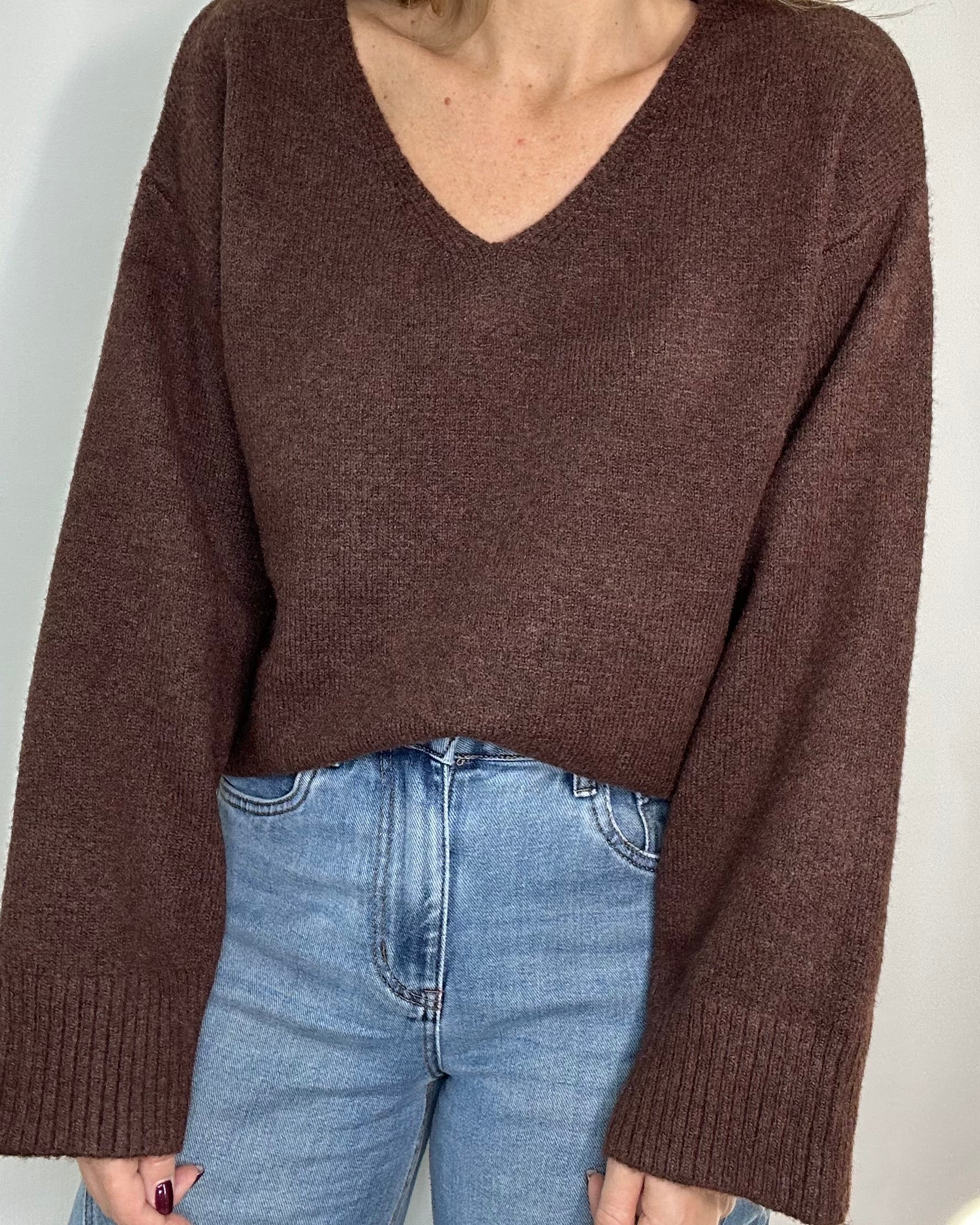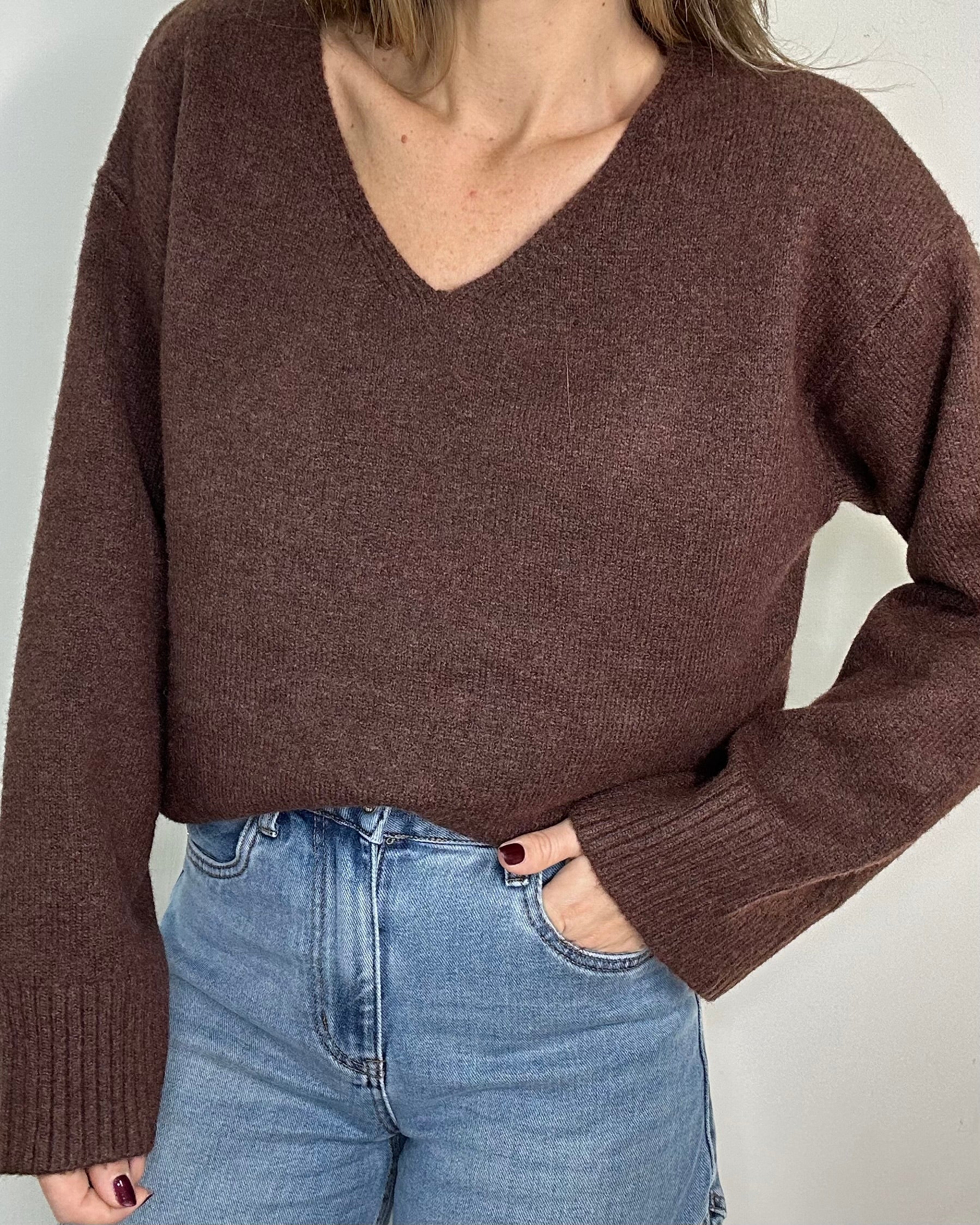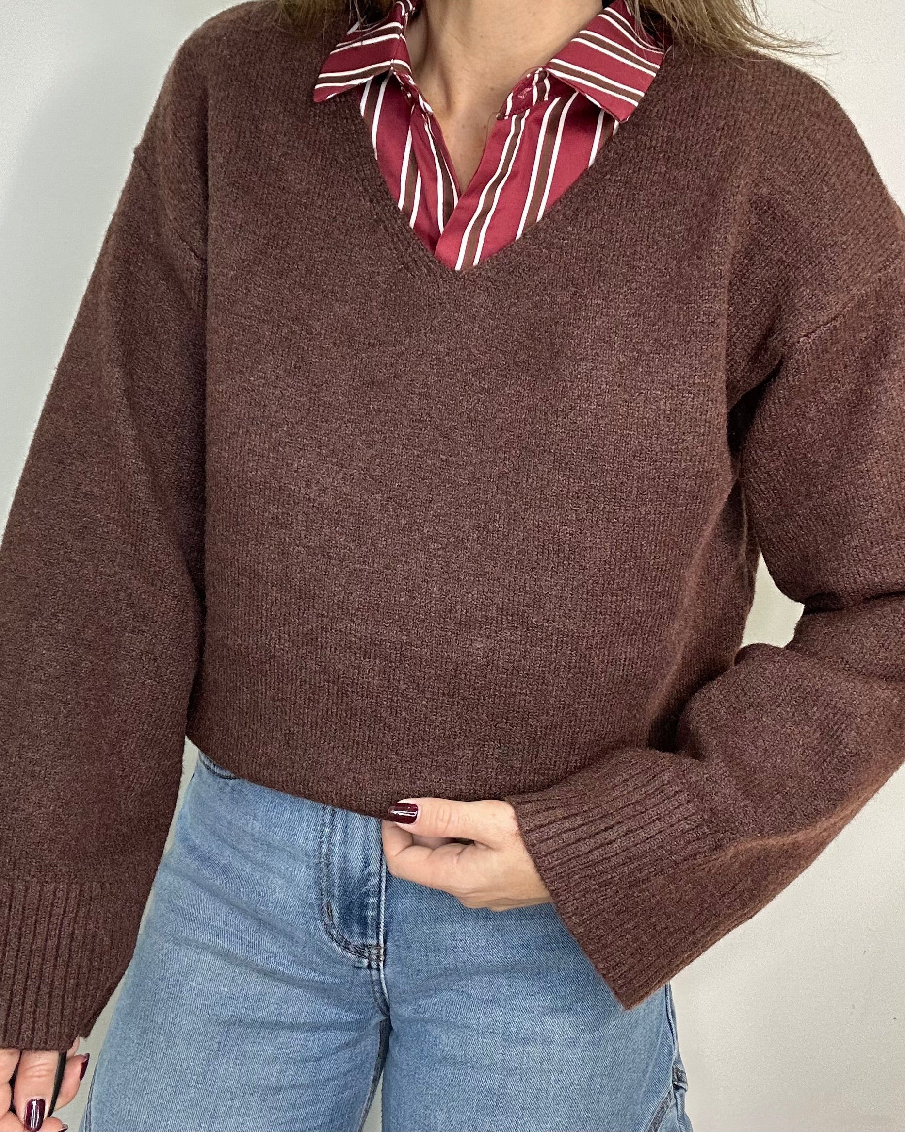 Maglione caldo e morbido, 20% lana con scollo AV. Linea pulita e raffinata, perfetto per look eleganti tono su tono e casual per dare stile ai tuoi outfit quotidiani.