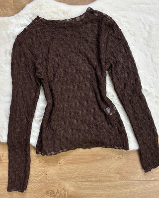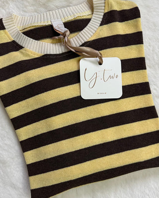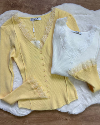 Maglia Paris a costine con inserti in pizzo gialla e bianca