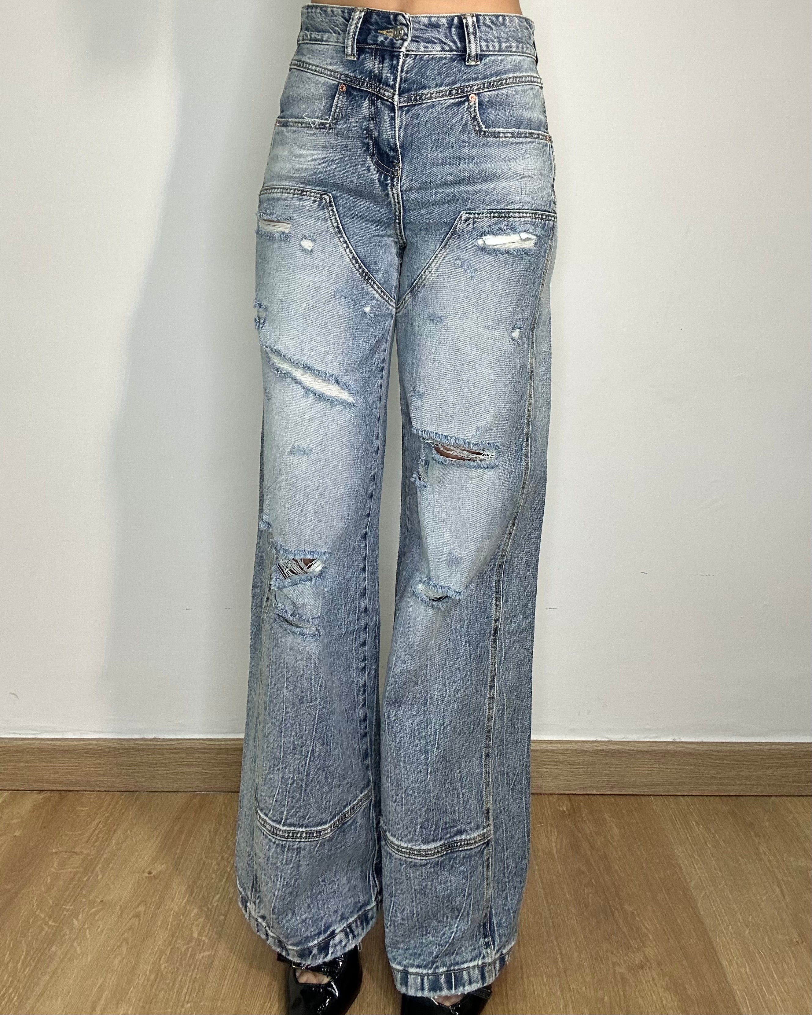 Jeans wide leg con strappi, ❌ non elasticizzato vestibilità aderente ❌ sé indecise tra due taglie scegliete la più grande