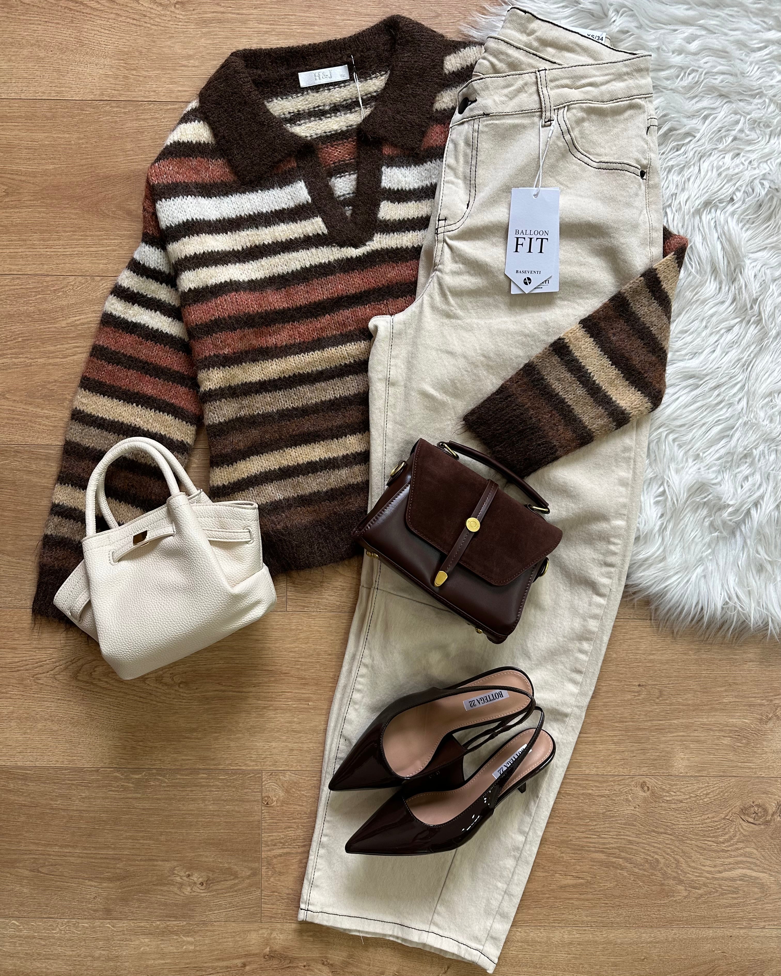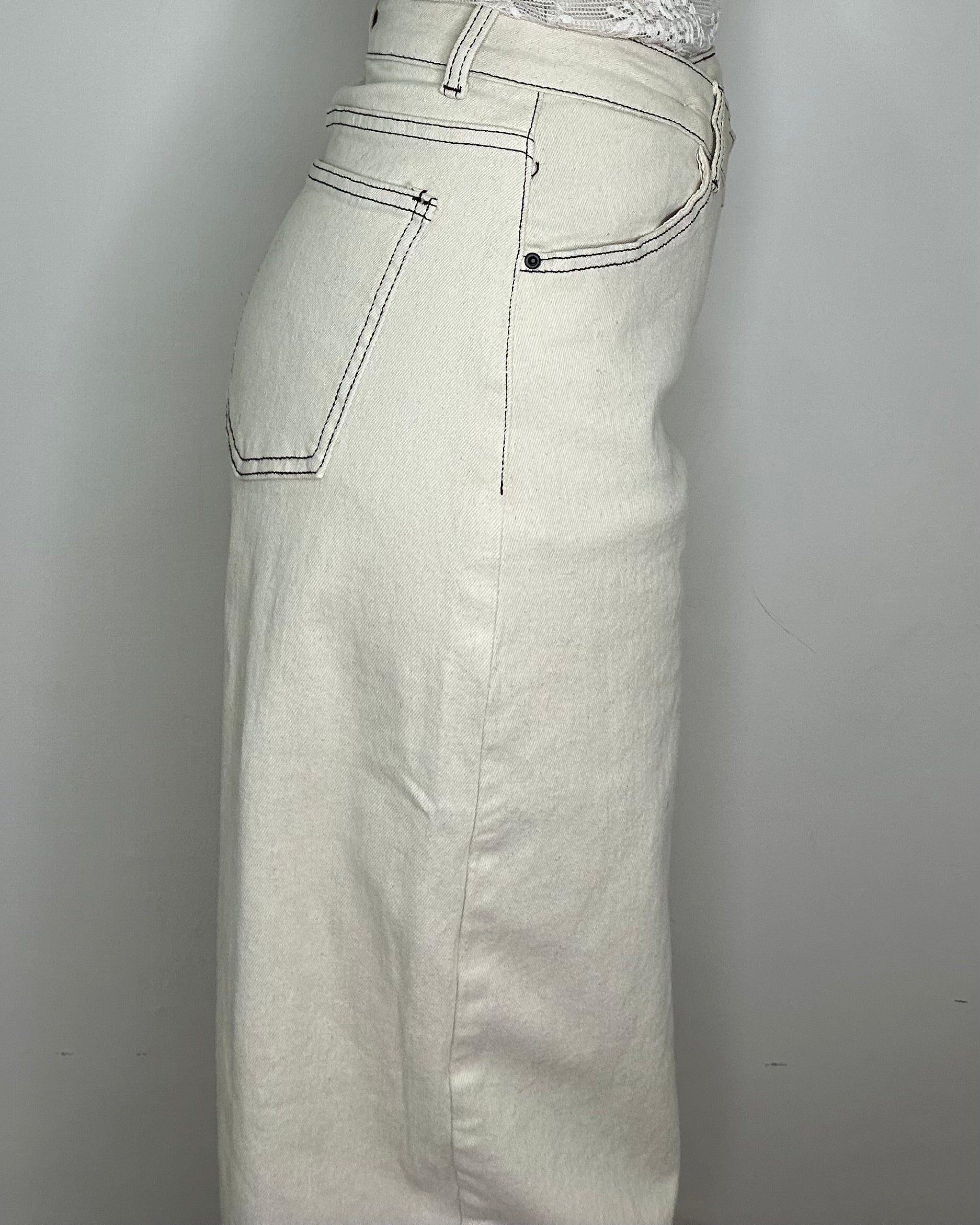 Ballon jeans avorio con chiusura asimmetrica Vita alta elasticizzato vestibilità morbida